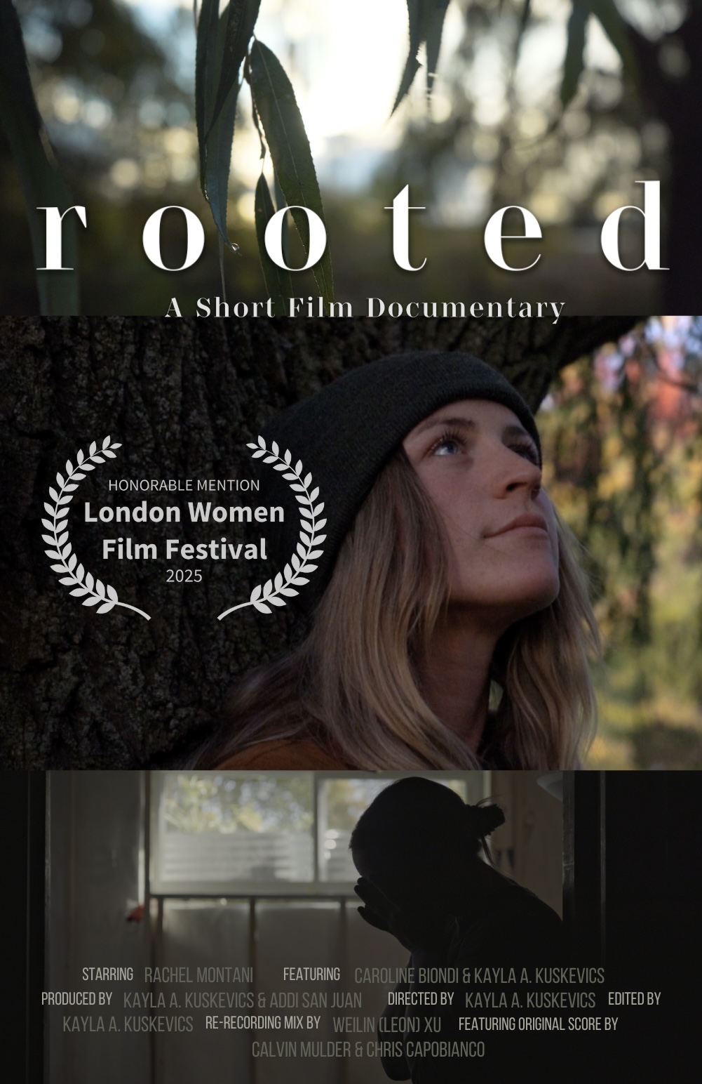 To the crew: Alex, Josh, Aleister, and Wesley - your talents and hard work shaped r o o t e d into the film it is today, and I am deeply grateful for each of you. Thank you to my professors who allowed me the artistic freedom to create something I could truly be proud of. To my supporting cast, Caroline and Brent - thank you for being such a pleasure to work with while supporting Rachel and this project.